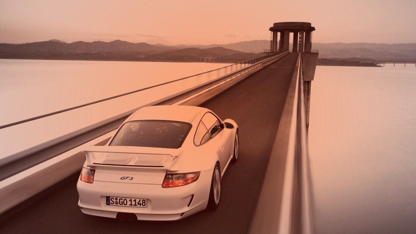 Обои для рабочего стола «Порше на дамбе» 1366х768 с фильтром toaster (оригинал 1920х1200)