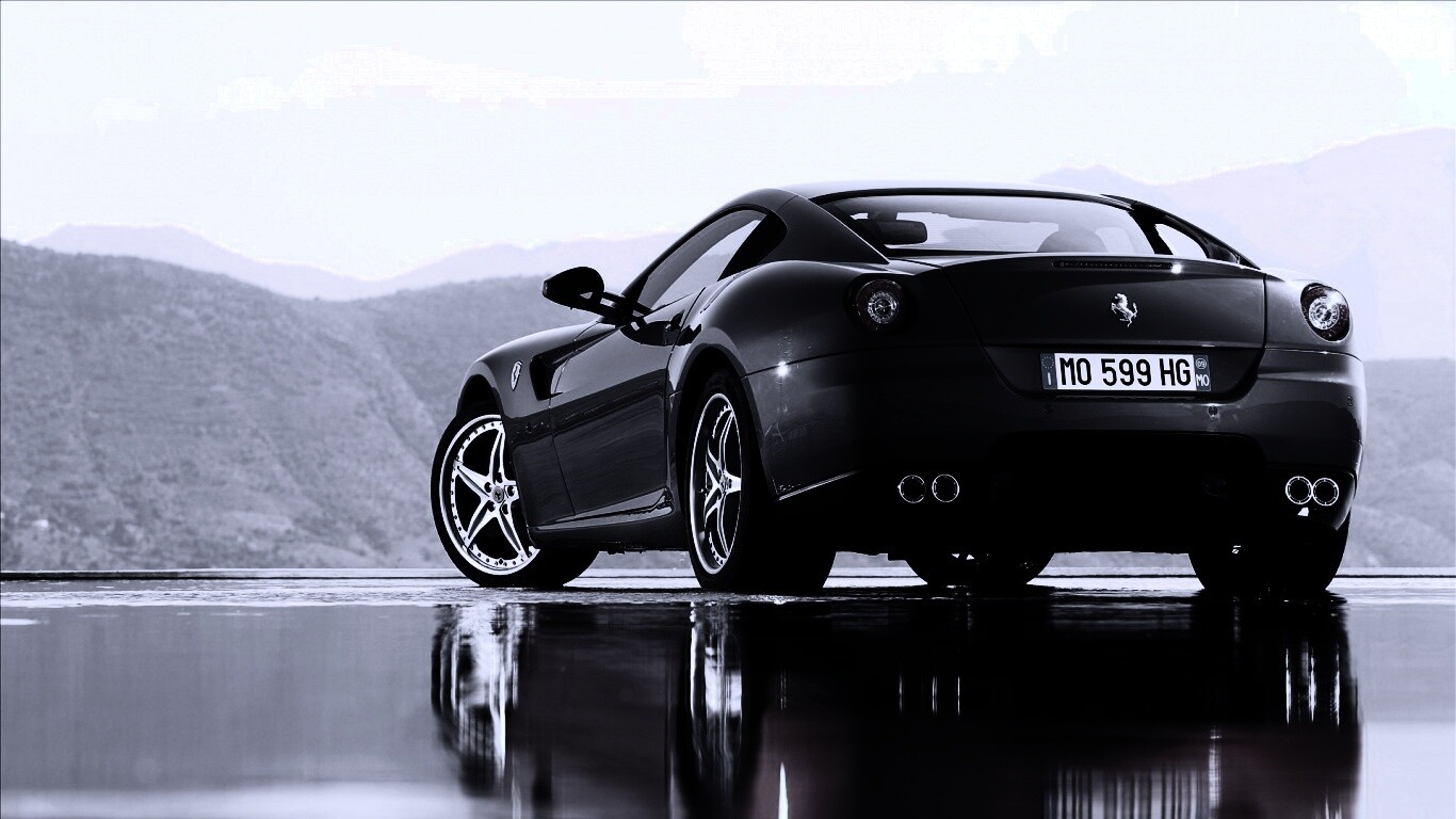 Обои для рабочего стола «Ferrari в отражении» 1366х768 с фильтром gotham (оригинал 1920х1200)