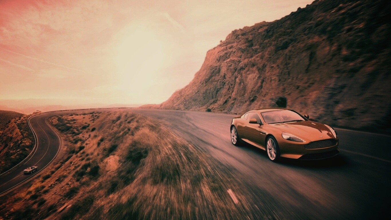Обои для рабочего стола «Aston Martin в горах» 1366х768 с фильтром earlybird (оригинал 1920х1200)