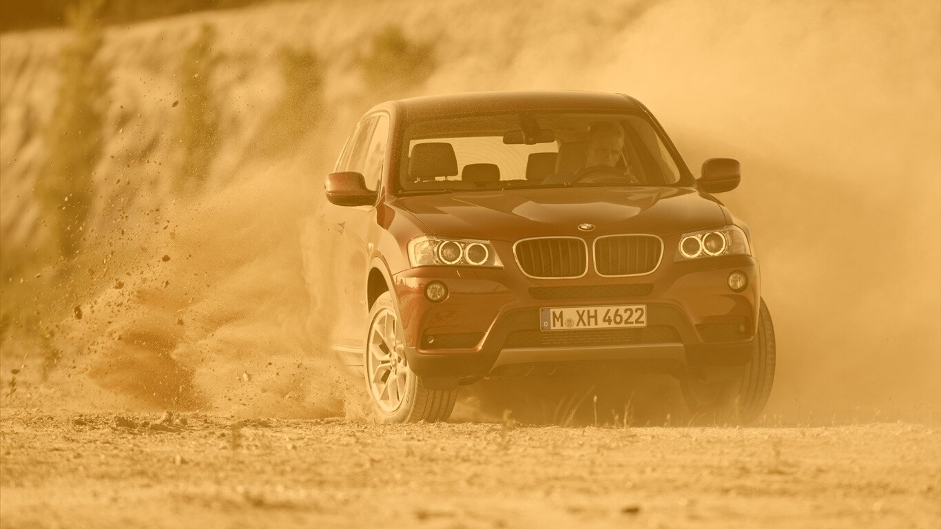 Обои для рабочего стола «Кроссовер BMW в заносе» 1366х768 с фильтром kelvin (оригинал 1920х1200)