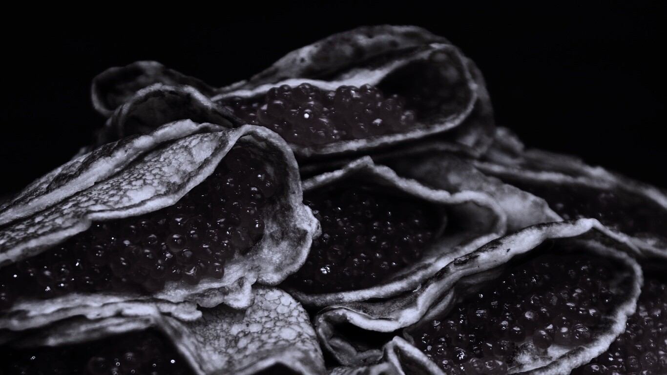 Обои для рабочего стола «Блины с красной икрой» 1366х768 с фильтром gotham (оригинал 1600х1200)