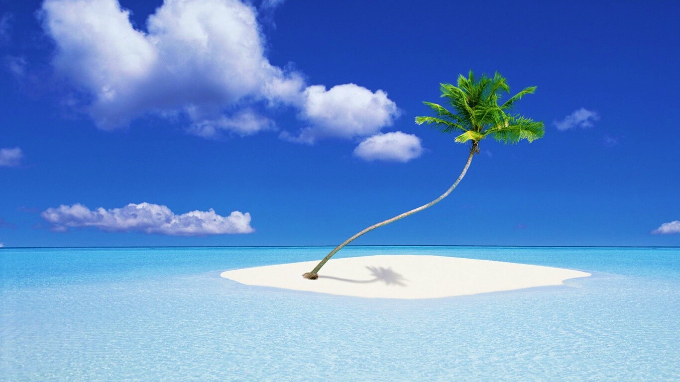 Обои для рабочего стола «Идеальный пальмовый остров» 1366х768 с фильтром vibrance (оригинал 1600х1200)