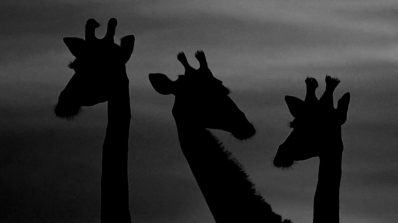 «Три силуэта жирафов на фоне неба»