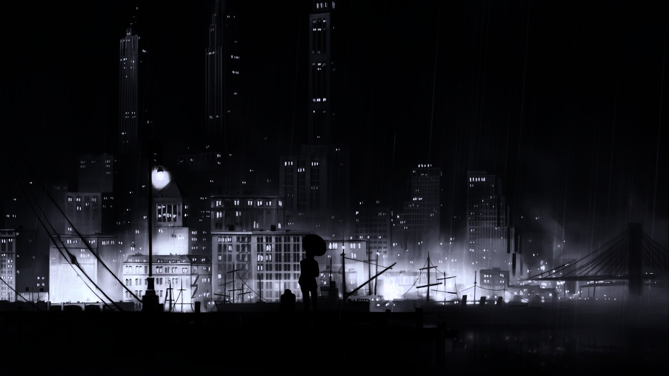 Обои для рабочего стола «Дядька с зонтиком же» 1366х768 с фильтром gotham (оригинал 1600х1200)
