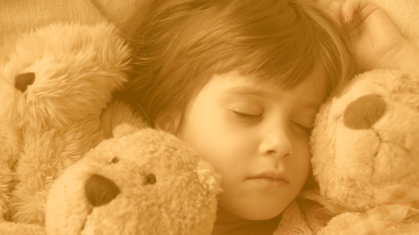 «Девочка спит с мишками в обнимку»
