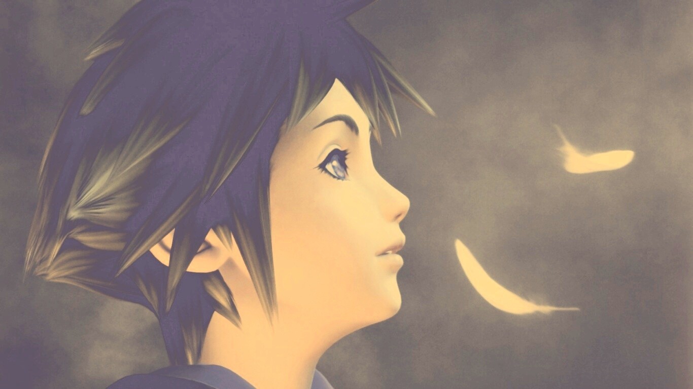 «Анимешный парень и белые перья»