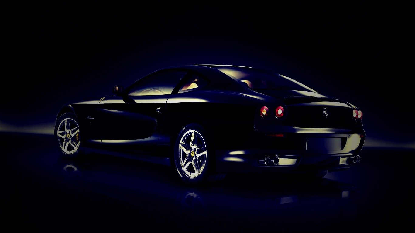 Обои для рабочего стола «Черная Феррари» 1366х768 с фильтром lomo (оригинал 1600х1200)