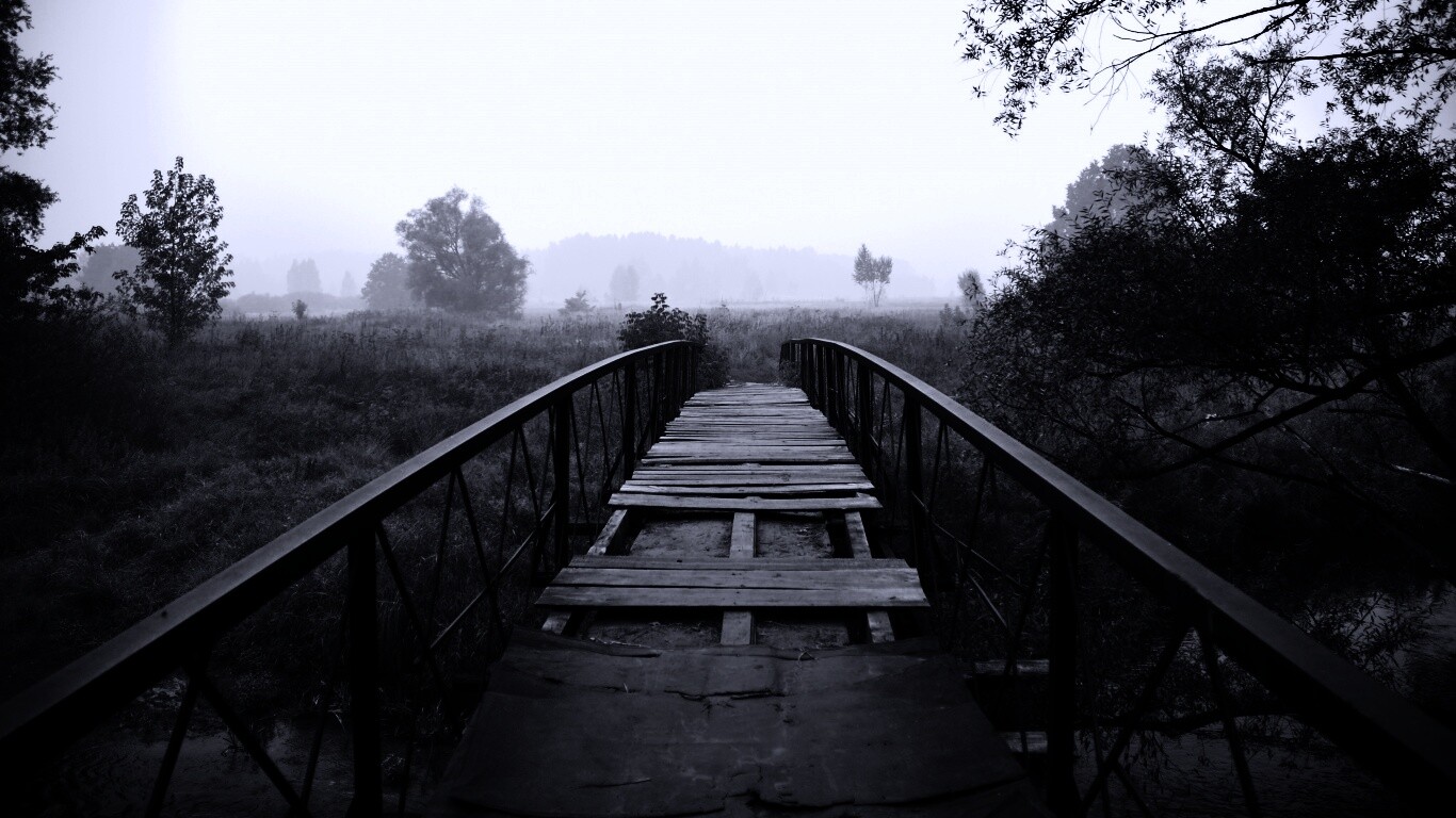 «Старый мост на черно-белом фото»
