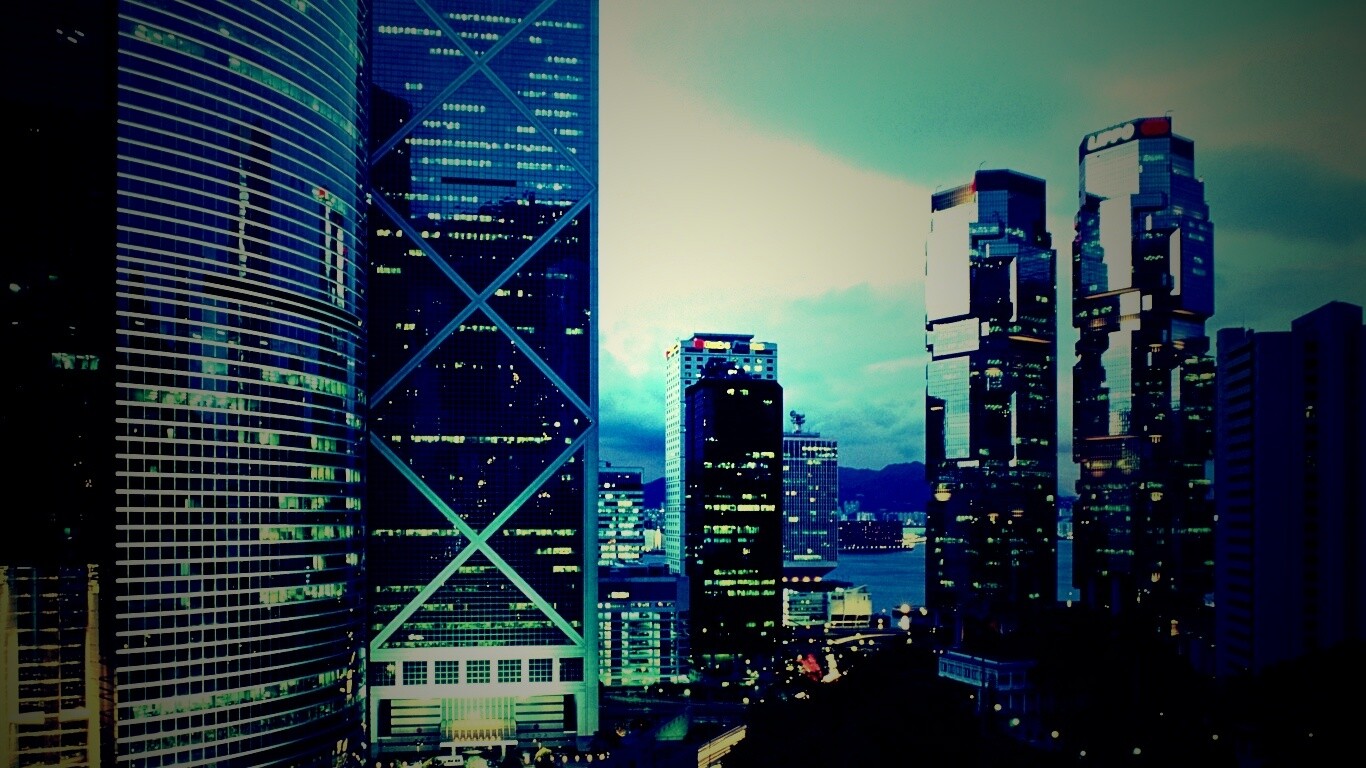 Обои для рабочего стола «Группа небоскребов» 1366х768 с фильтром lomo (оригинал 5170х3442)
