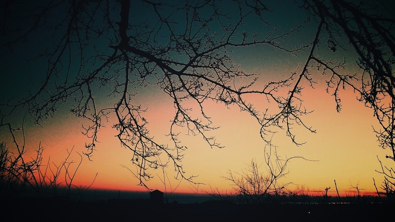 «Закат сквозь ветки деревьев»