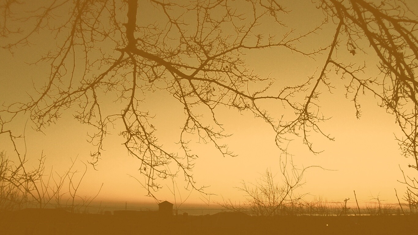«Закат сквозь ветки деревьев»