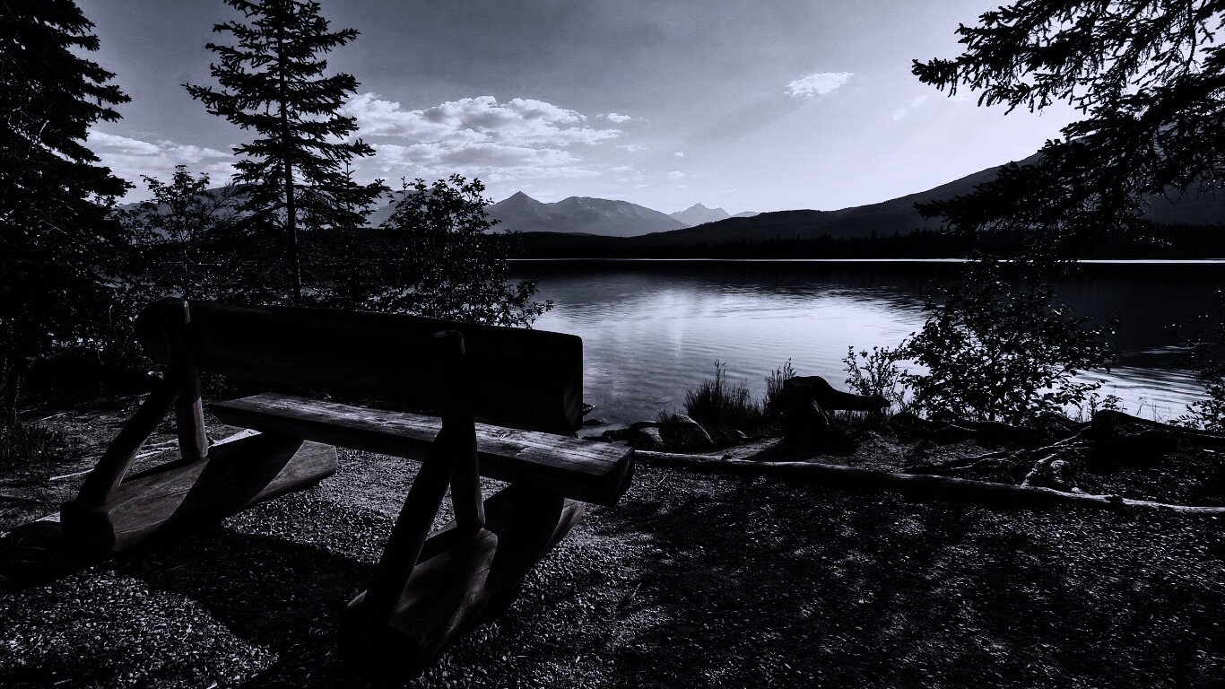 «Деревянная скамья на берегу озера»