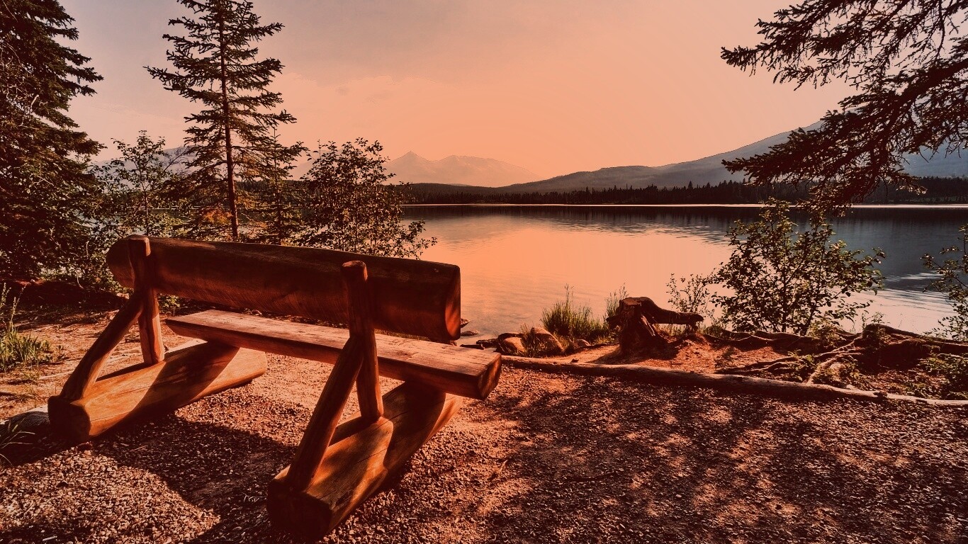 «Деревянная скамья на берегу озера»
