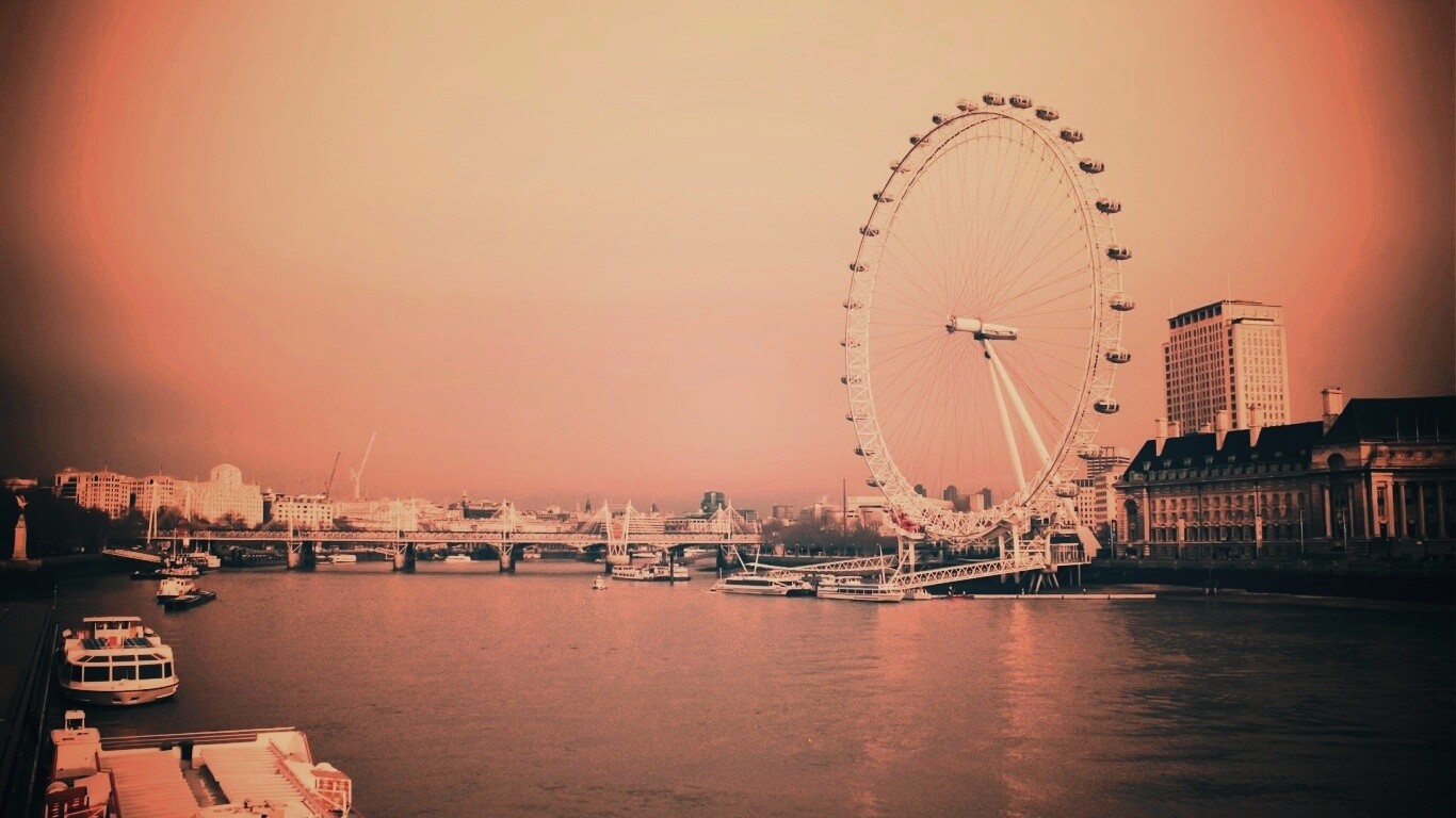 Обои для рабочего стола «Колесо обозрения» 1366х768 с фильтром earlybird (оригинал 1920х1200)