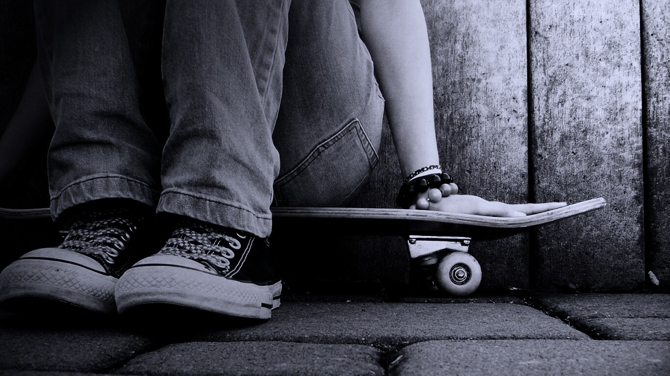 «Девушка сидящая на скейте»