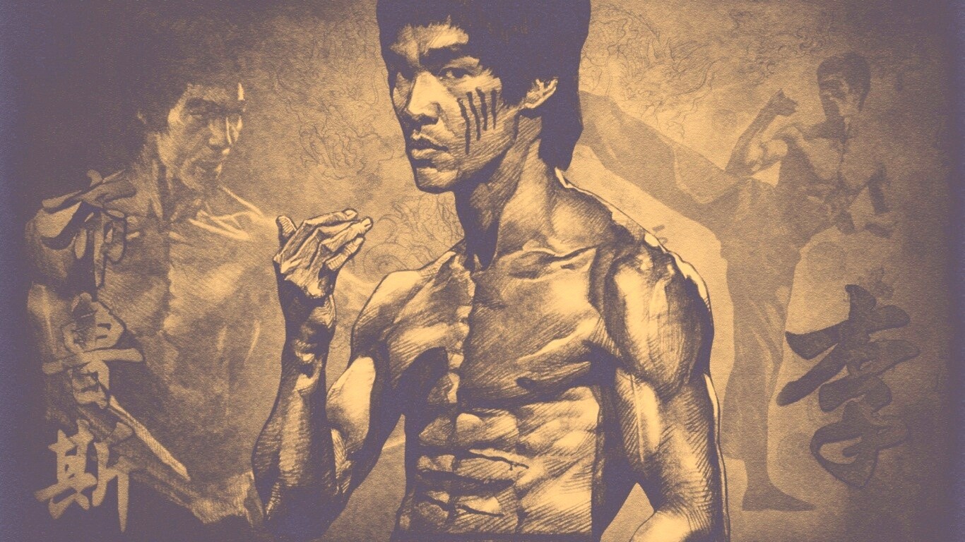 Обои для рабочего стола «Портрет Брюса Ли» 1366х768 с фильтром nashville (оригинал 2560х1600)