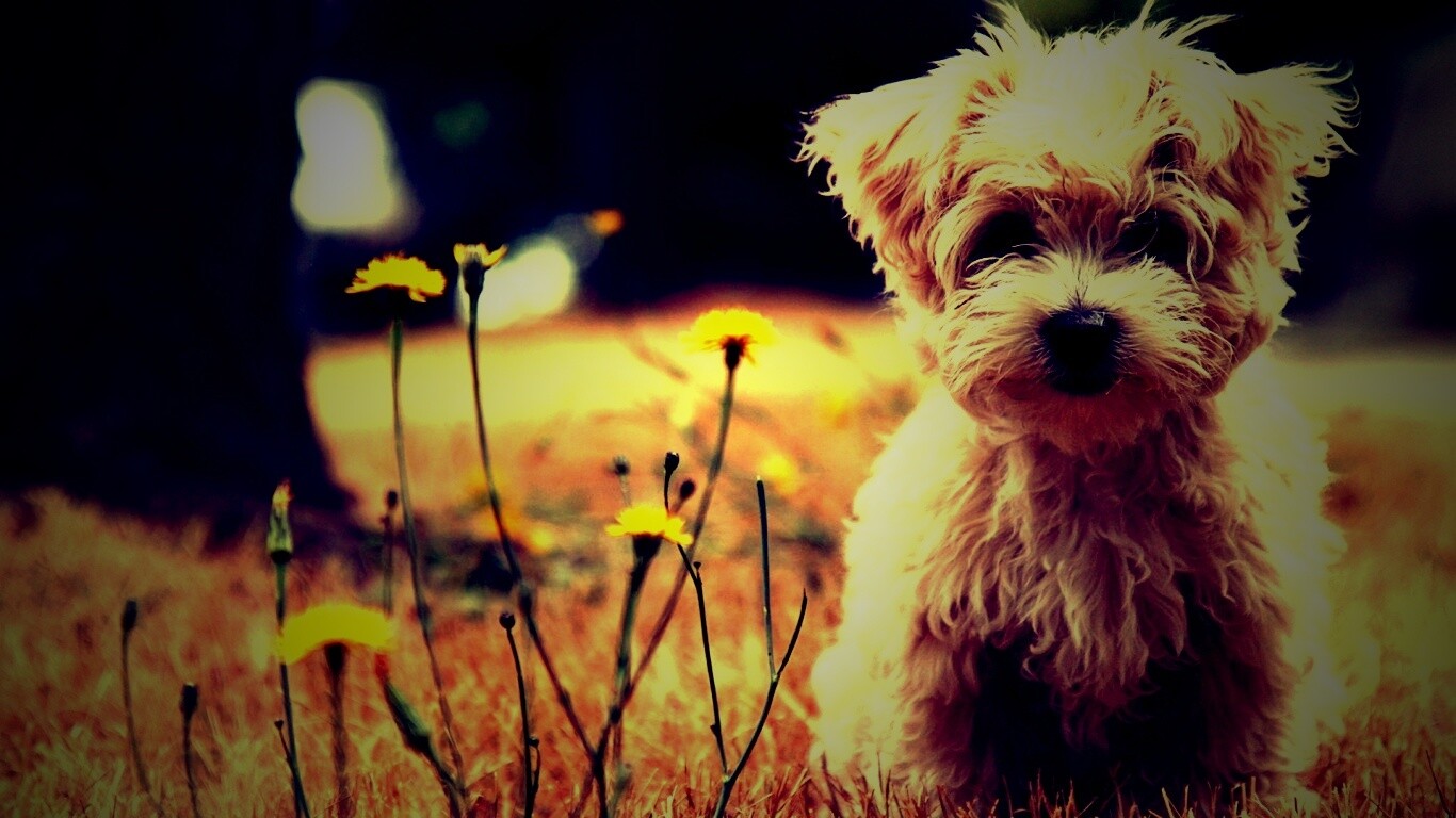 Обои для рабочего стола «Щенок болонки» 1366х768 с фильтром lomo (оригинал 1920х1200)
