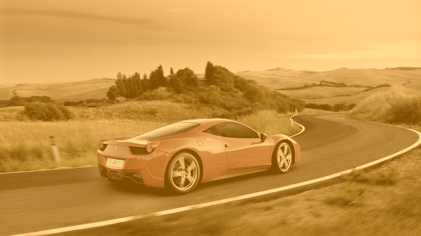 «Красная феррари на извилистой дороге»