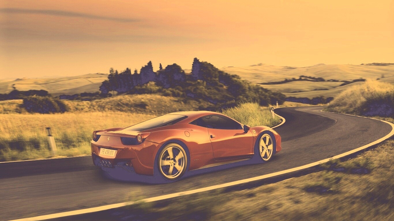 «Красная феррари на извилистой дороге»