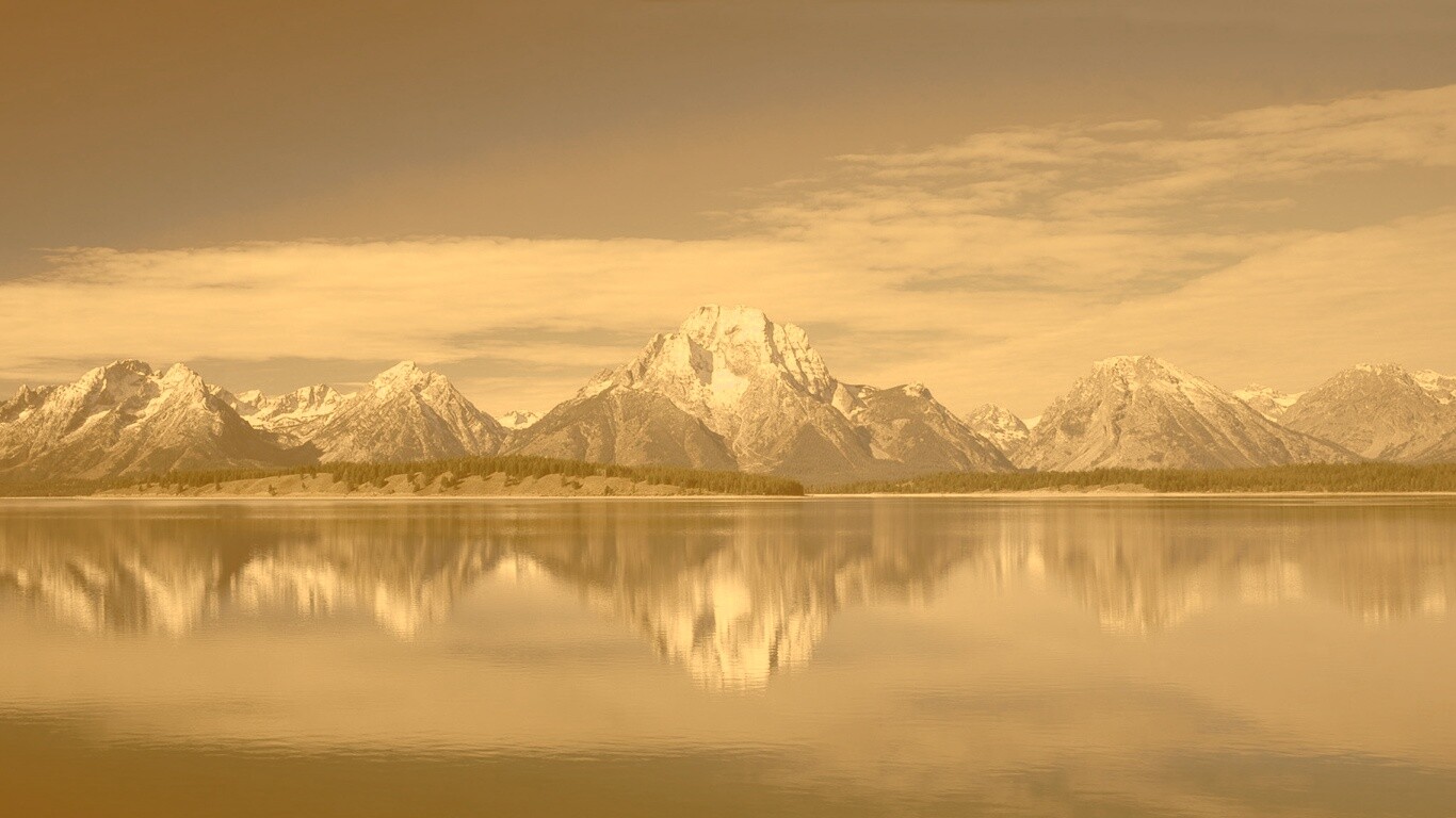 «Вид на горы за озером»