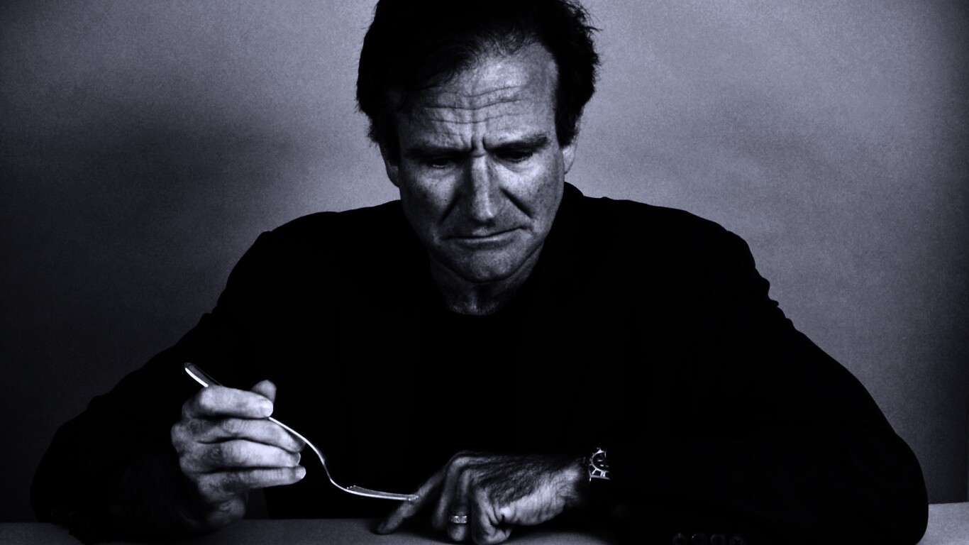 Обои для рабочего стола «Робин Уильямс перед зеркалом» 1366х768 с фильтром gotham (оригинал 1600х1200)