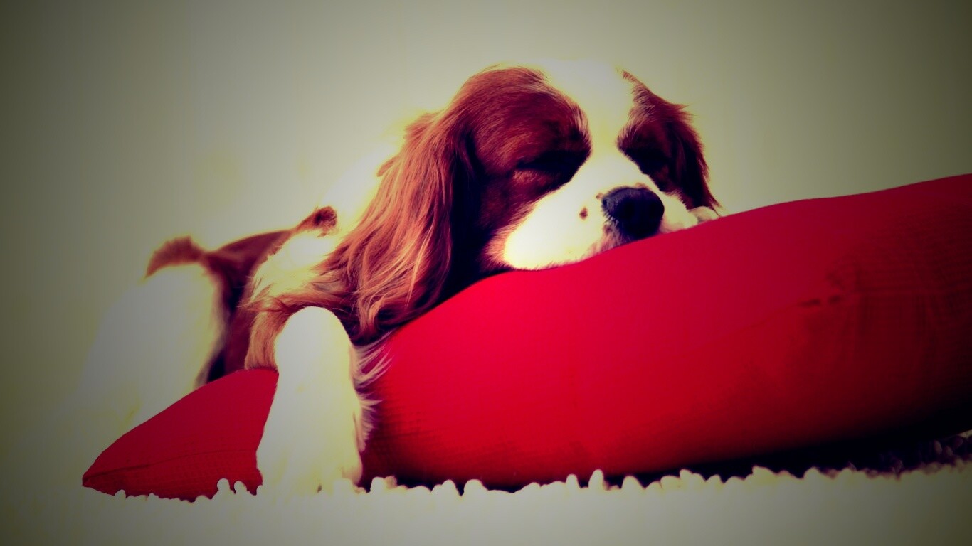«Спящий щенок на красной подушке»