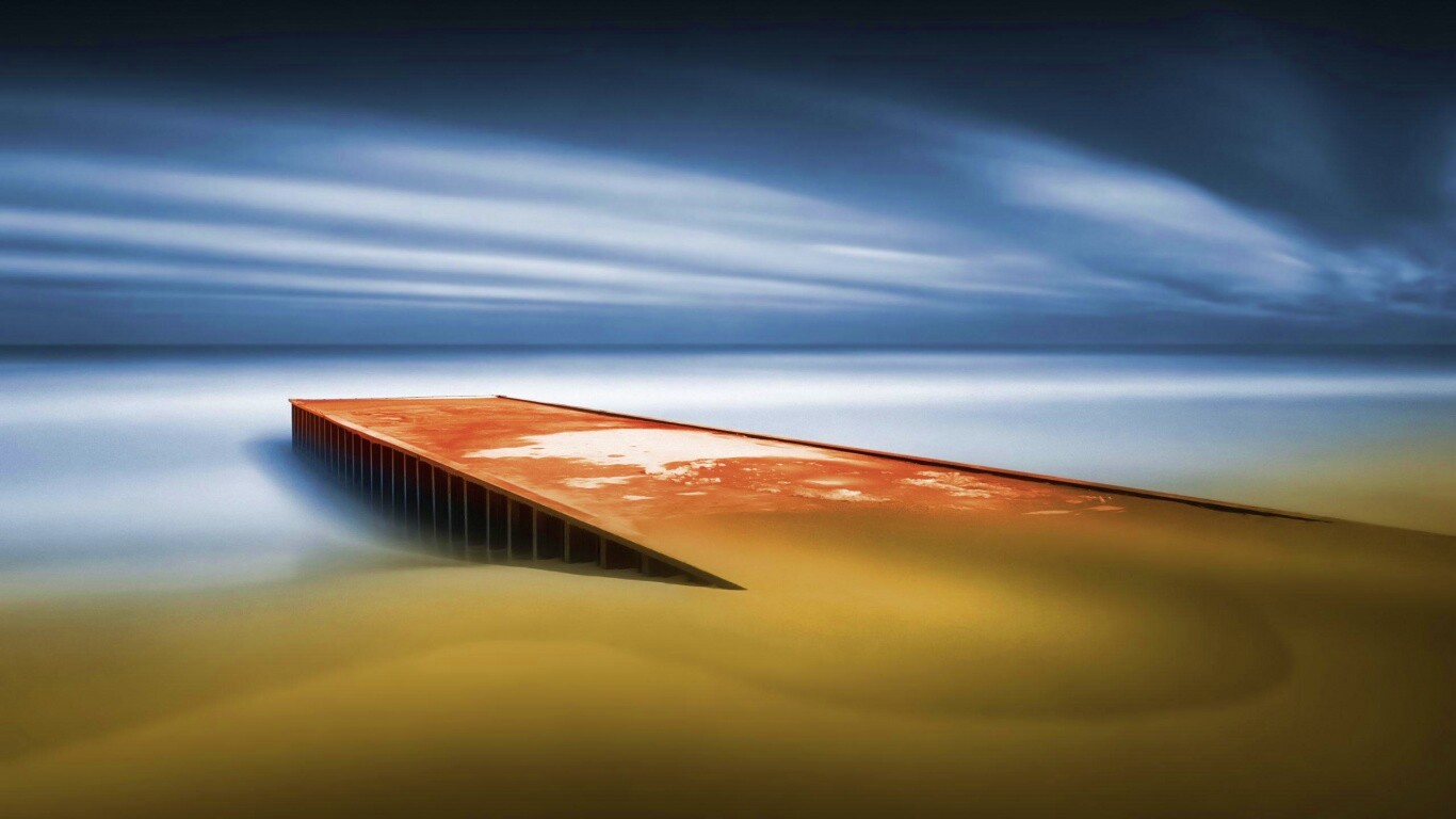 Обои для рабочего стола «Пирс на пляже» 1366х768 с фильтром vibrance (оригинал 2560х1600)