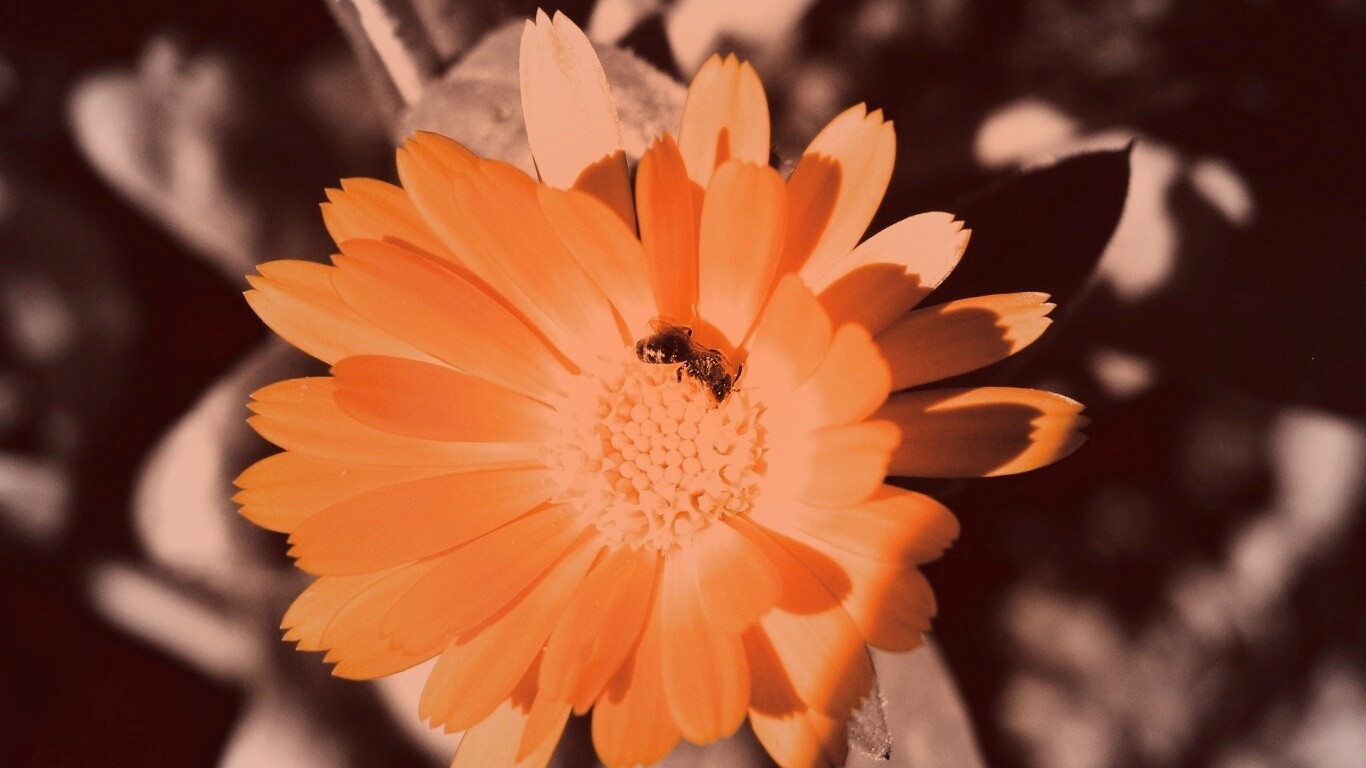 Обои для рабочего стола «Оса на цветке» 1366х768 с фильтром toaster (оригинал 2560х1600)