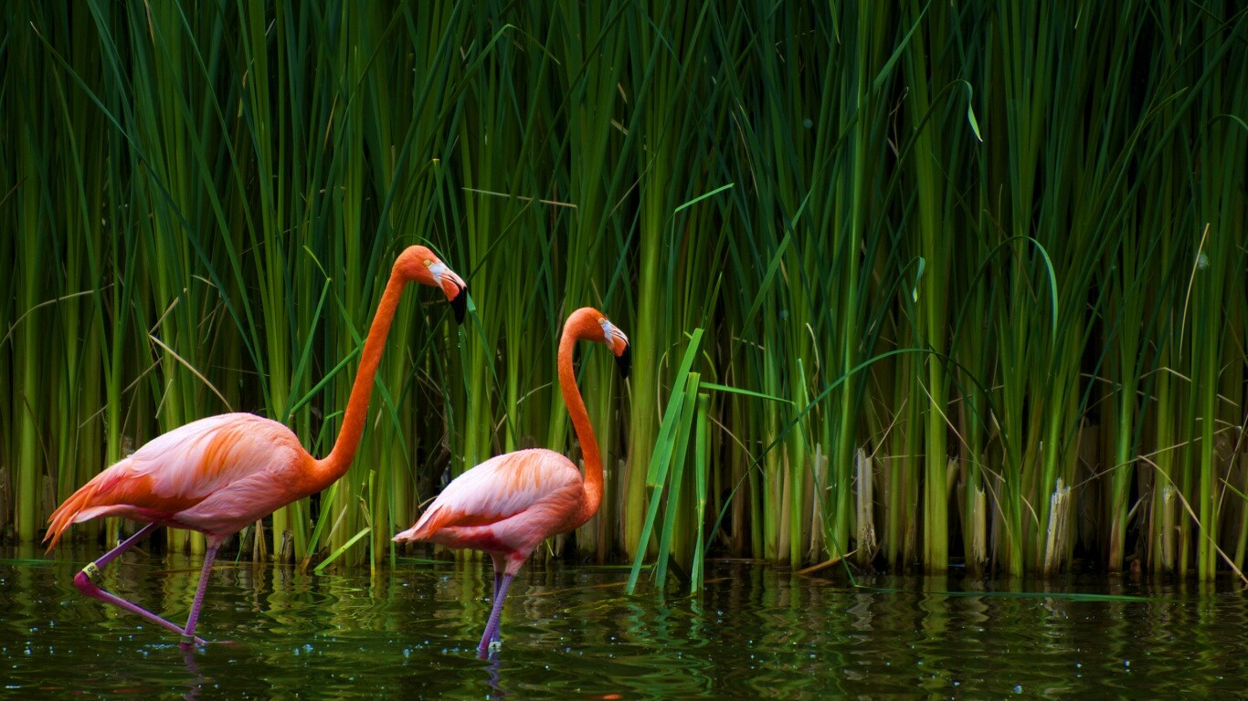 «Красивые розовые фламинго на озере»