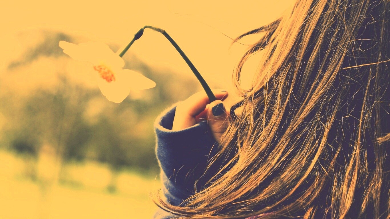 Обои для рабочего стола «Девушка с нарциссом в руке» 1366х768 с фильтром nashville (оригинал 2560х1600)