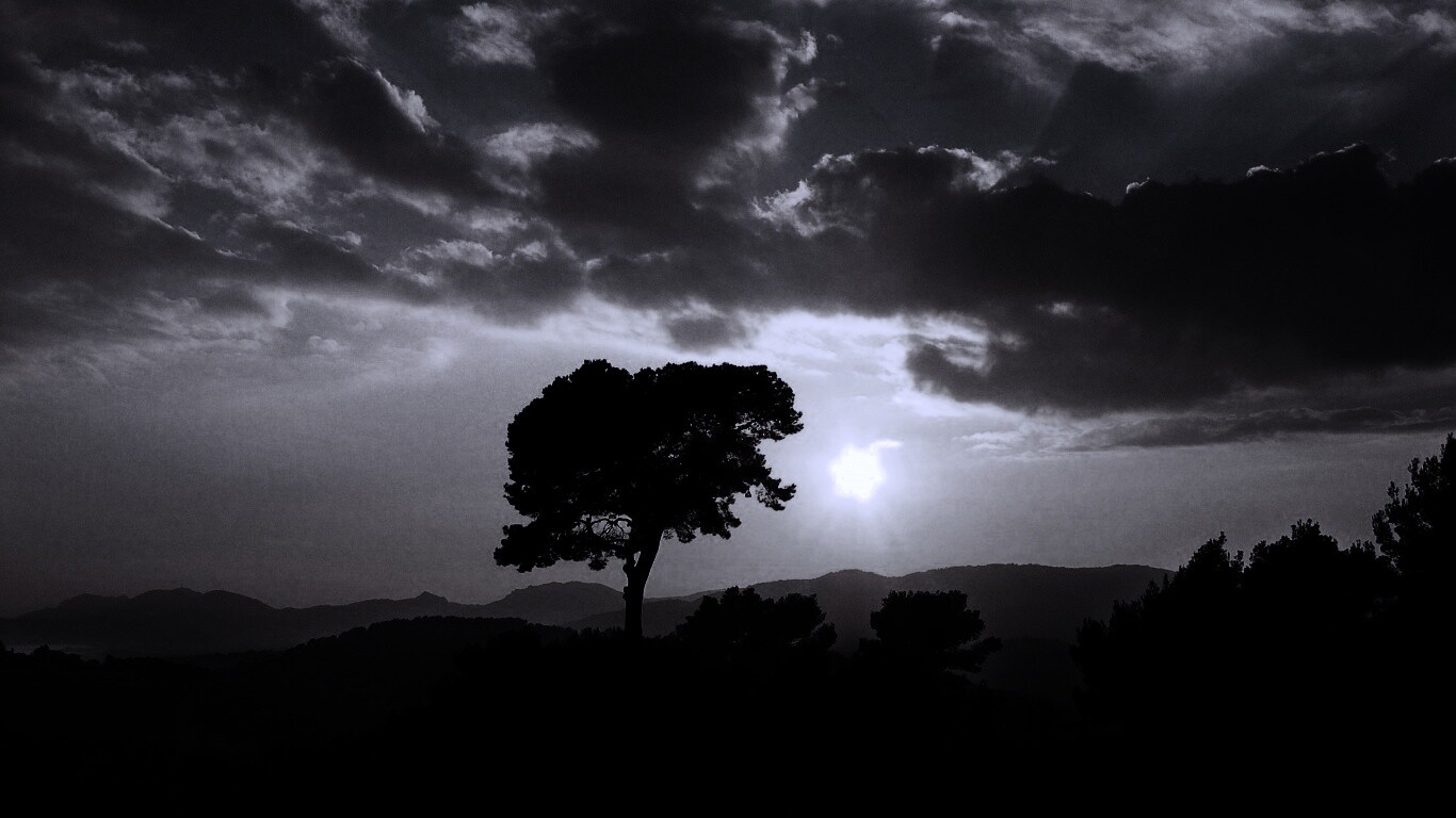 Обои для рабочего стола «Закат над холмами» 1366х768 с фильтром gotham (оригинал 2560х1600)