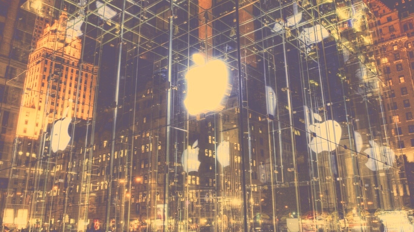 «Отражение логотипа Apple в стеклянном здании»
