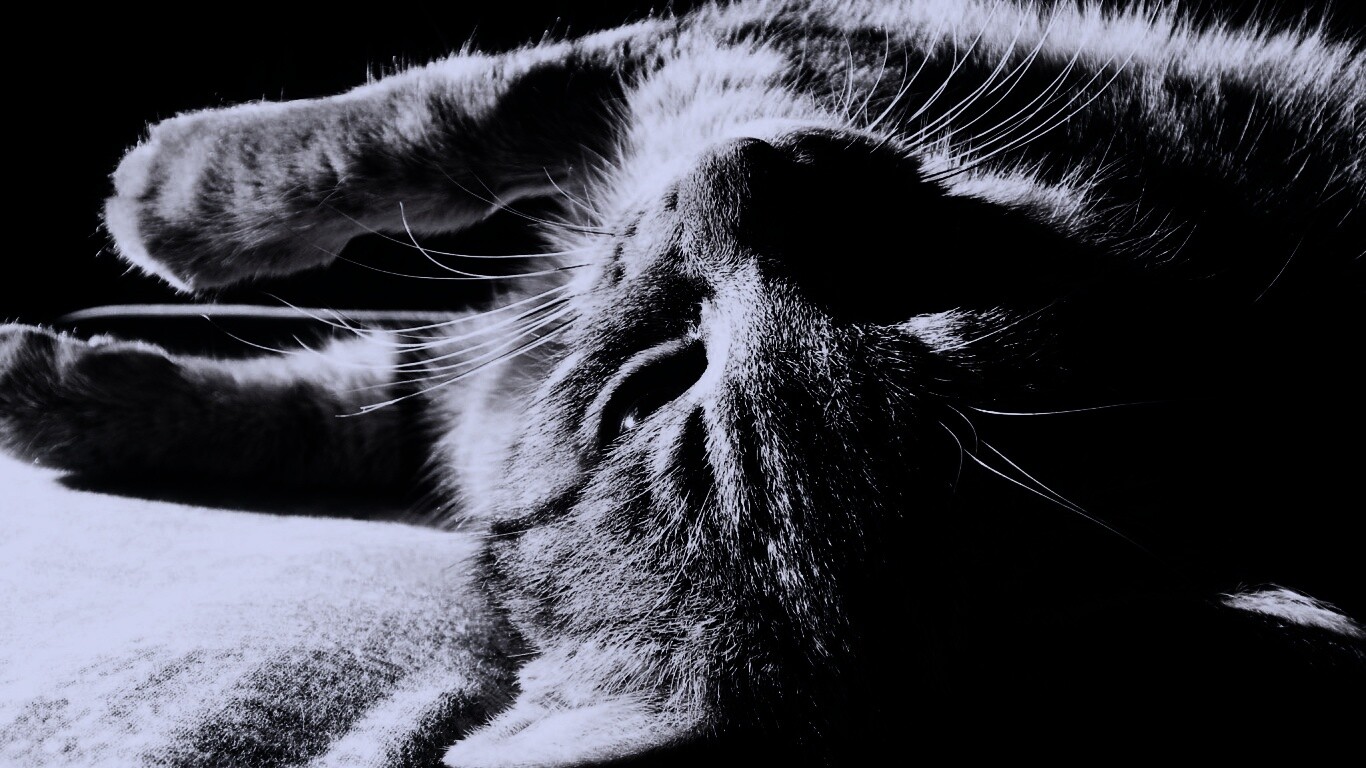Обои для рабочего стола «Нежащийся кот» 1366х768 с фильтром gotham (оригинал 2048х1536)