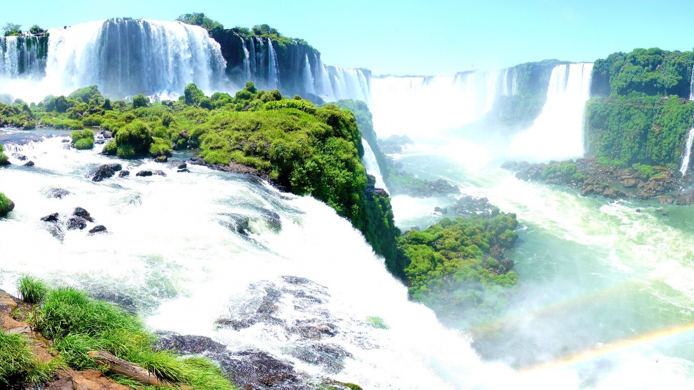Обои для рабочего стола «Край водопадов» 1366х768 с фильтром vibrance (оригинал 3200х1200)