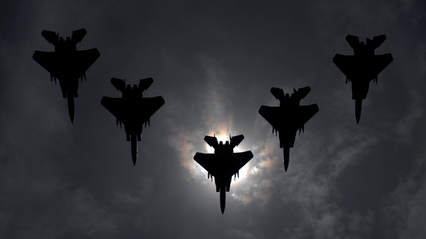 «Ряд истрибителей на фоне солнца»