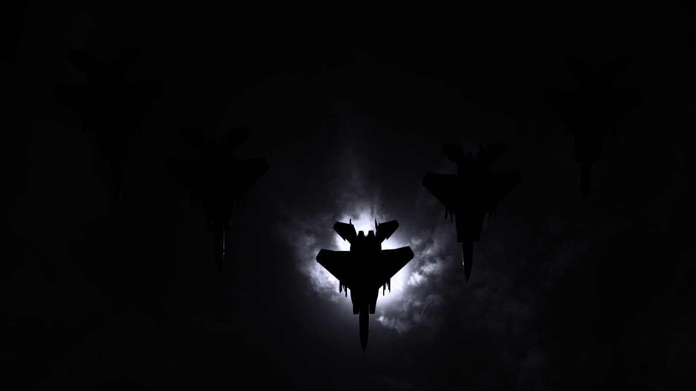«Ряд истрибителей на фоне солнца»