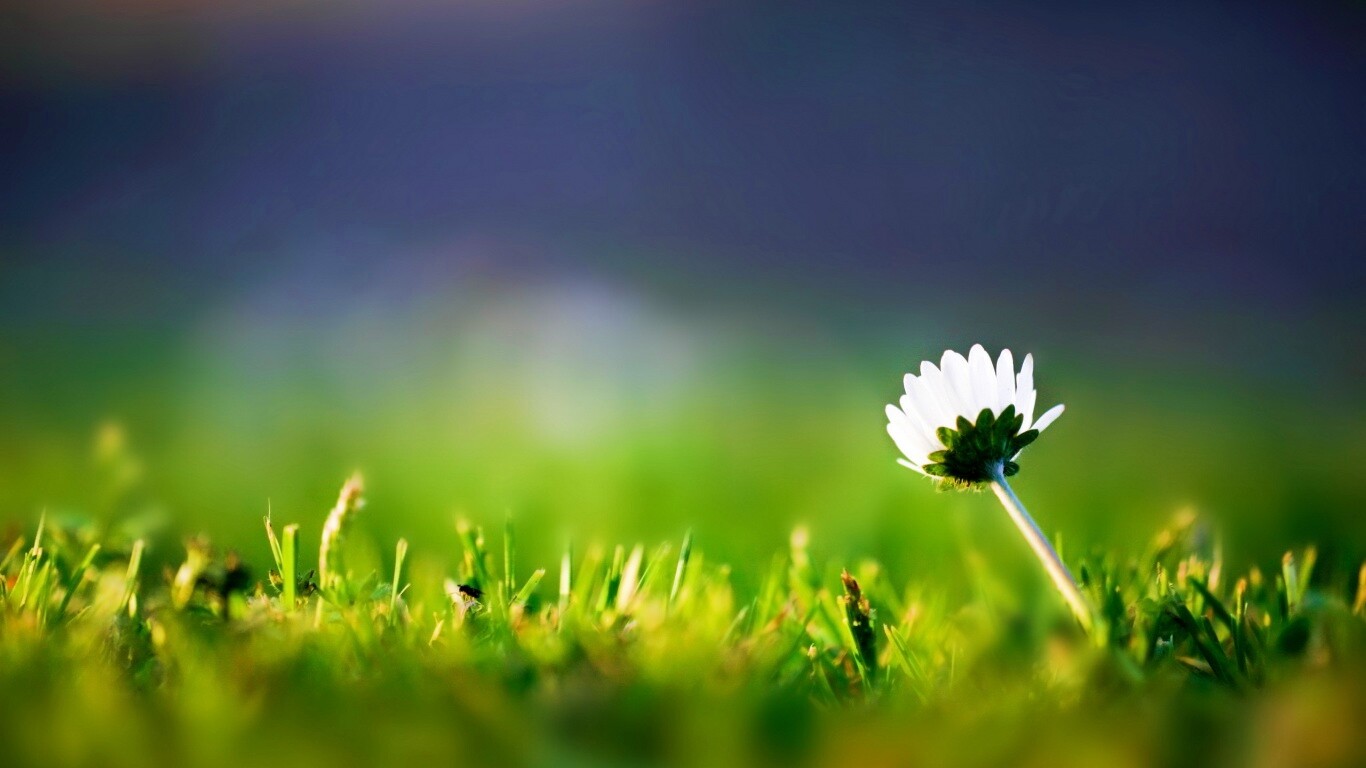 Обои для рабочего стола «Цветок на траве» 1366х768 с фильтром vibrance (оригинал 2560х1600)