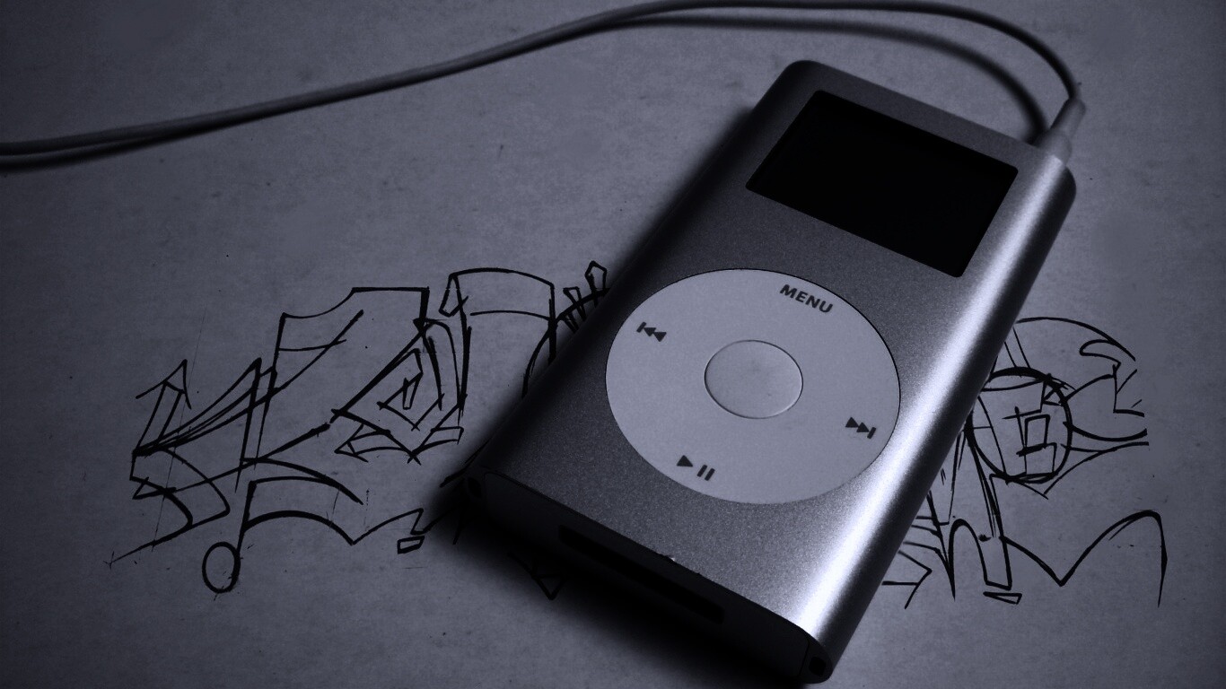 «iPod на лиске с граффити»