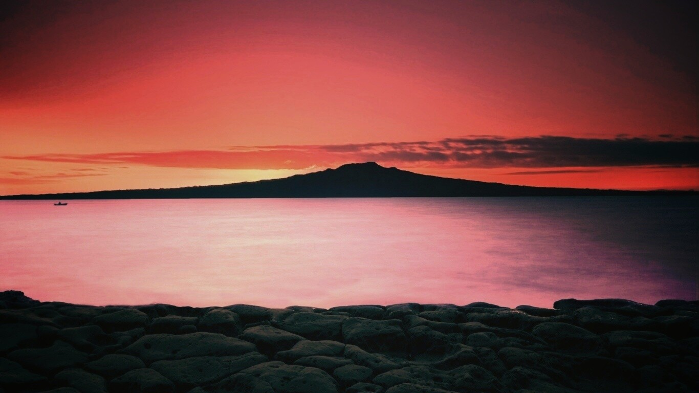 Обои для рабочего стола «Закат за островом Рангитото» 1366х768 с фильтром earlybird (оригинал 1920х1200)