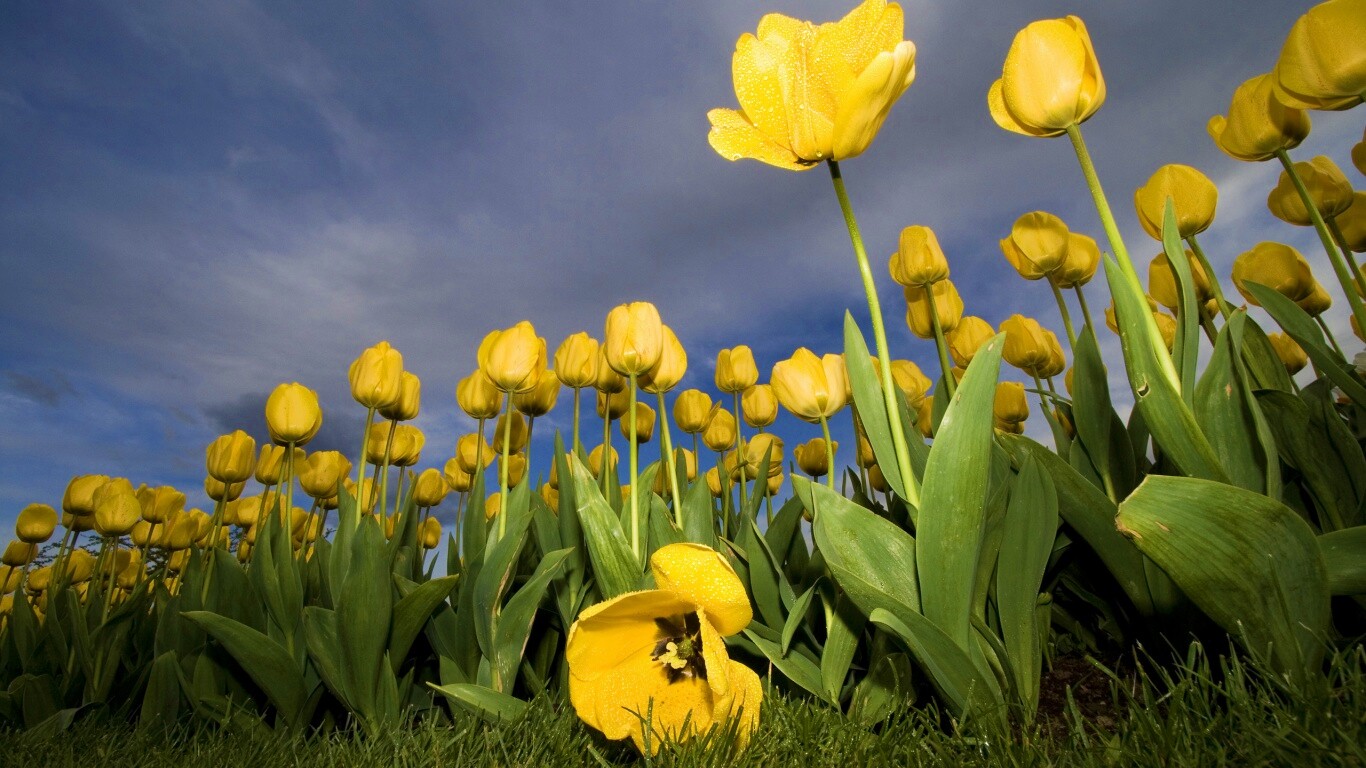 Обои для рабочего стола «Жёлтые тюльпаны» 1366х768 с фильтром vibrance (оригинал 2560х1600)