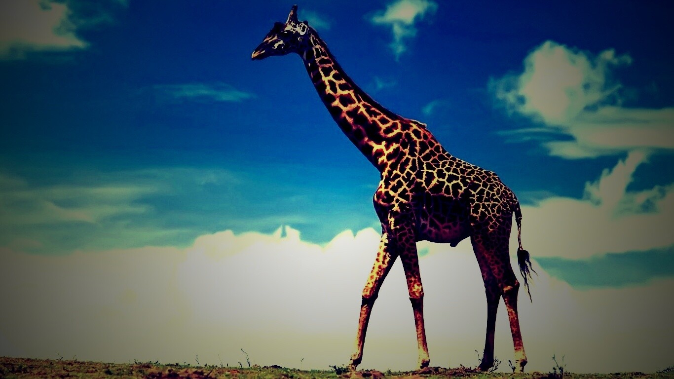 Обои для рабочего стола «Жираф на прогулке» 1366х768 с фильтром lomo (оригинал 1920х1200)