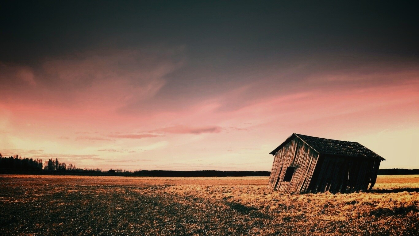Обои для рабочего стола «Покосившийся сарай» 1366х768 с фильтром earlybird (оригинал 2560х1600)