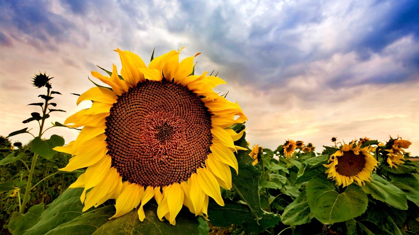 Обои для рабочего стола «Подсолнухи» 1366х768 с фильтром vibrance (оригинал 2560х1600)