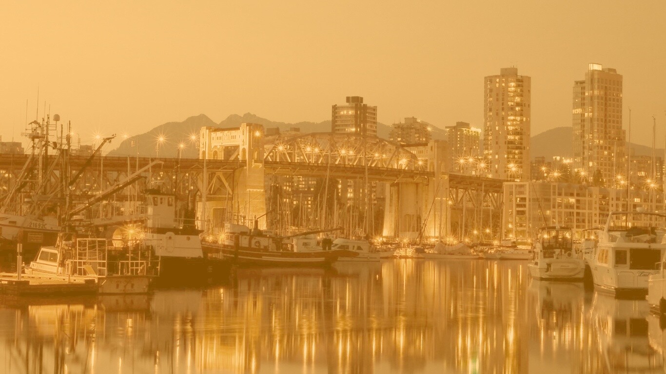 «Мост и катера на закате»