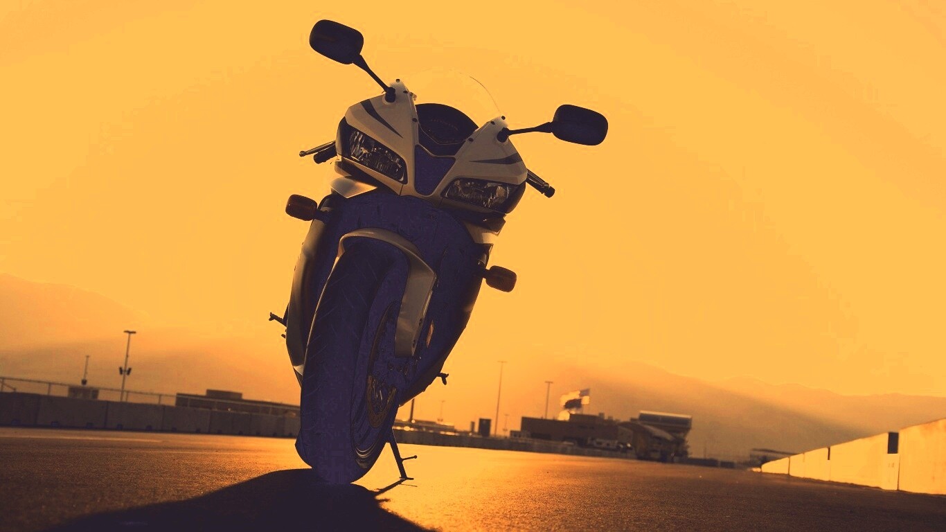«Мотоцикл на фоне заходящего солнца»
