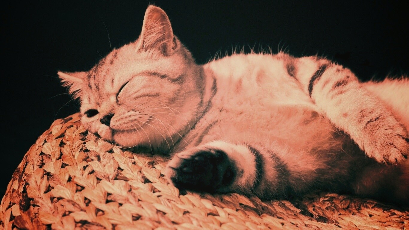 «Пушистый кот спит на корзине»