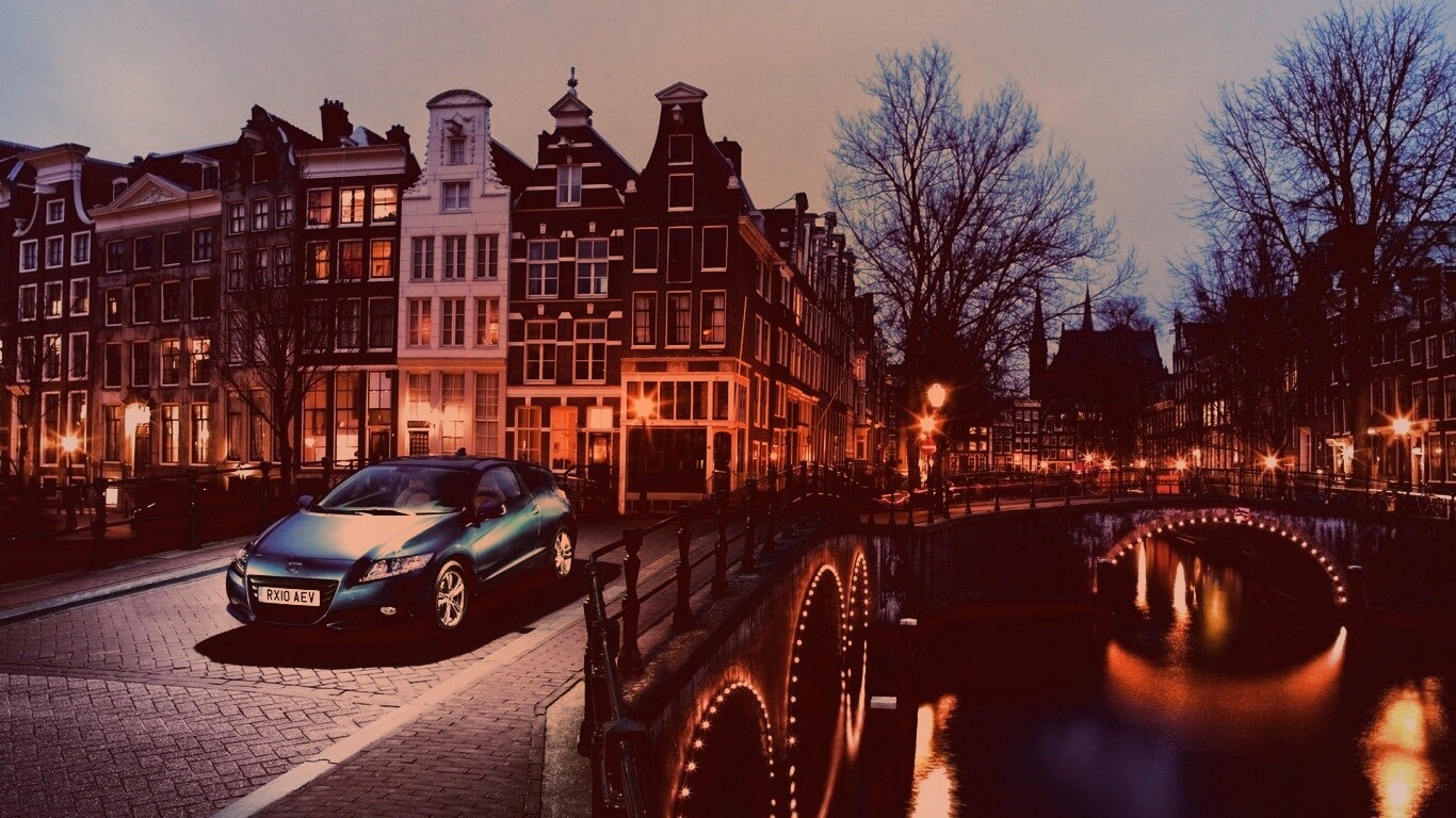 «Автомобиль на мосту в свете фонаря»