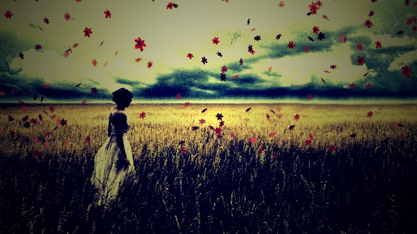«Грустная девушка в поле травы»