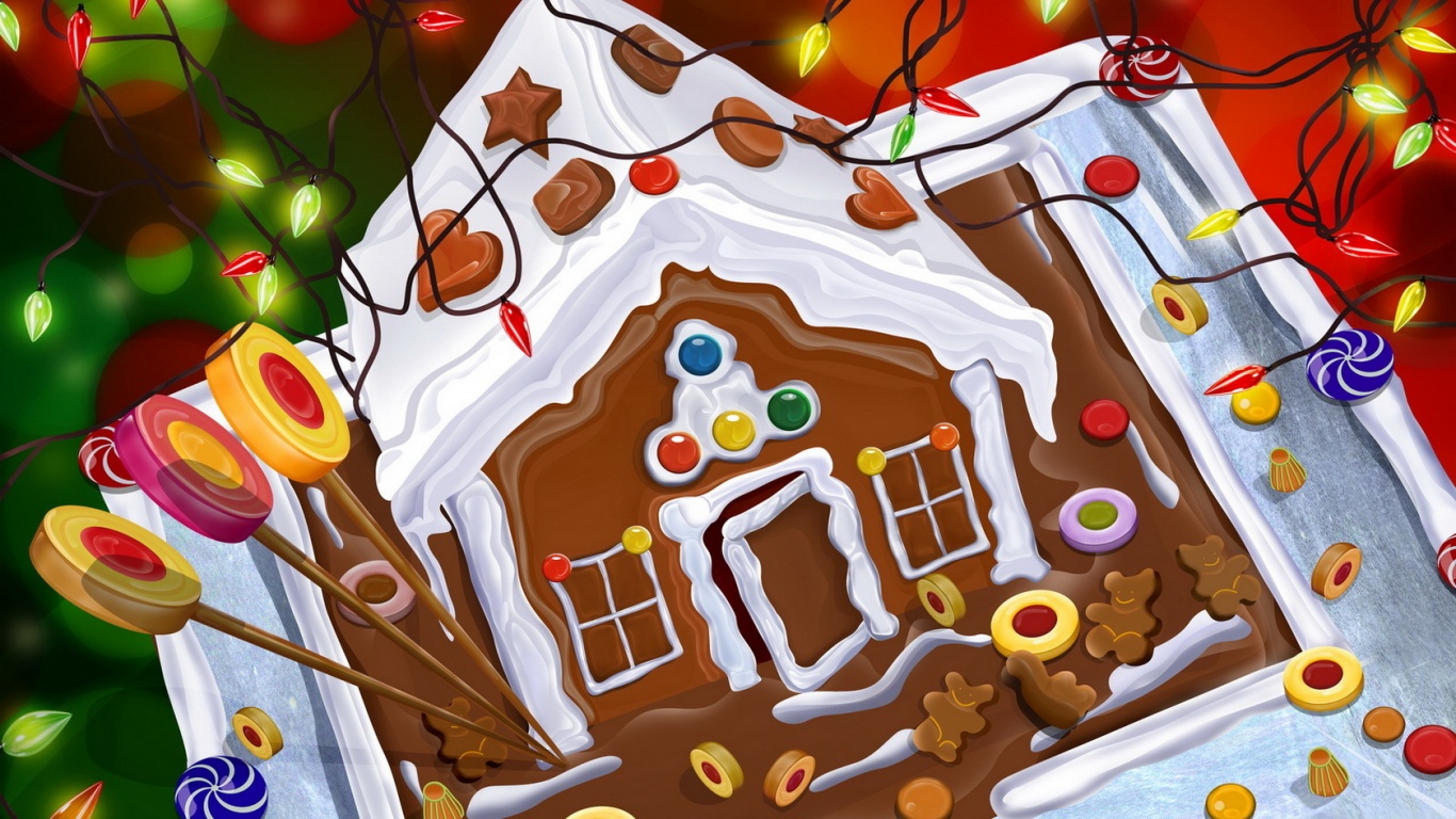 Обои для рабочего стола «Пряничный домик» 1366х768 (оригинал 1680х1050)
