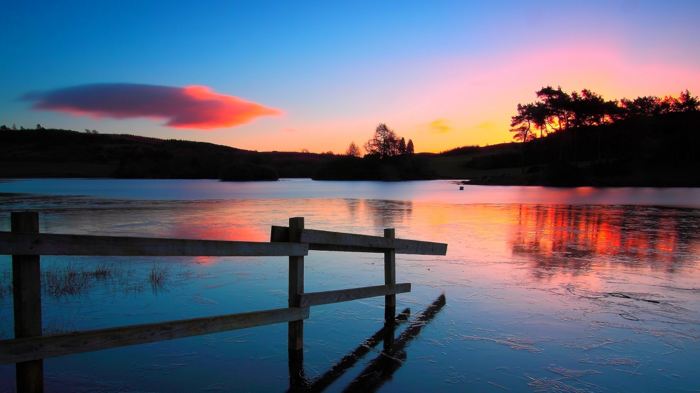 Обои для рабочего стола «Красивый закат на озере» 1366х768 (оригинал 3200х2000)